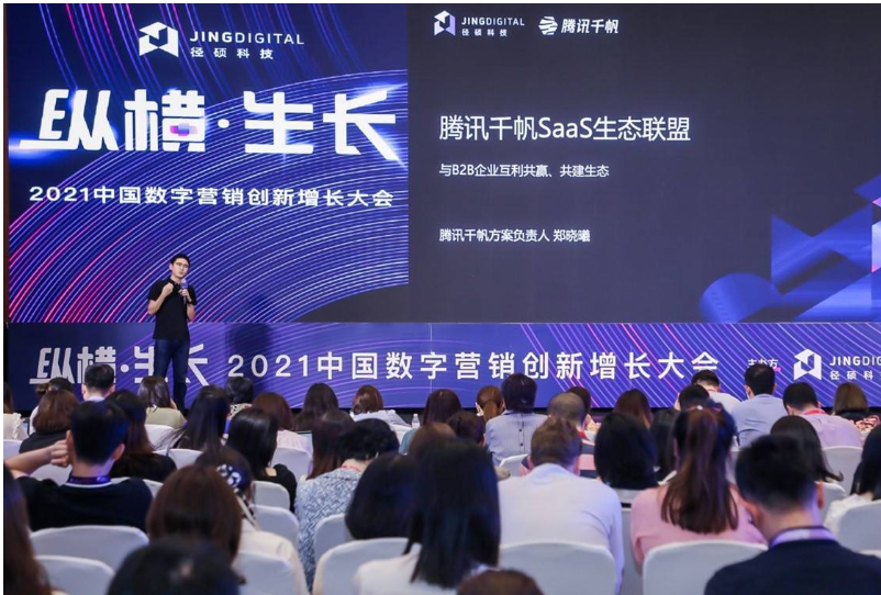 企业微信成为企业正式连接用户的重城要地。2021中国数字营销创新增长大会不仅邀请到腾讯企业微信行业总监张峰、腾讯千帆方案负责人郑晓曦莅临大会发表主题演讲,JINGdigital径硕科技市场总监肖逸珺也在峰会现场发布了径硕科技最新出品的白皮书《企业微信如何助力B2B企业从“营”到“销”?》。