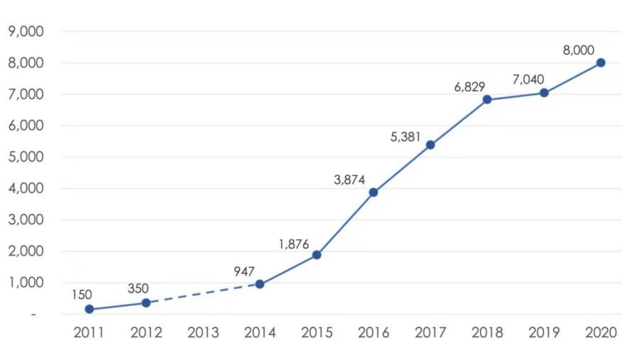 自2011年MarTech概念提出,MarTech相关企业在全球范围内已达到了8000家,相比最初的150家,增长了50多倍。