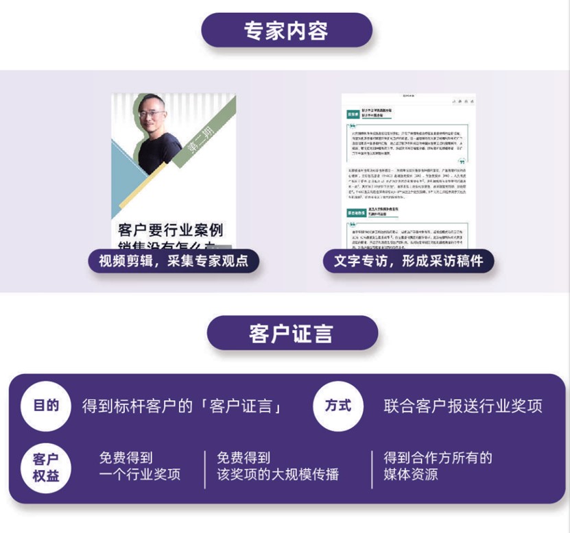 除了对内“薅”资源,学会扩展出去,借用外部力量也是找灵感的一种方式。依靠强势的客户关系,寻找企业KOC、KOL,并通过资源置换(如共同宣发、内容物料中为对方做适当的曝光和露出等)、共同申报奖项等形式,得到领域内客户及专家的背书。不要羞于开口,想好自己能为对方带来什么,再基于此进行深入沟通交流,主动就会有故事。如果缺乏外部的专家资源,企业不妨从内部专家级别的同事入手,进行相关视频以及文字专访的包装。