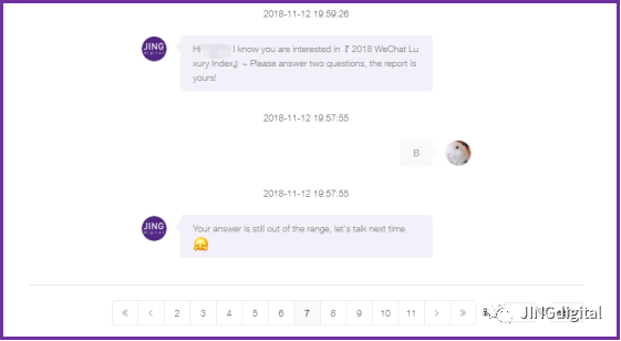 JINGdigital根据其企业需求与整体营销方案,在JINGdigital的技术支持下,使该企业实现更多功能,真正实现“将微信粉丝转为客户”。