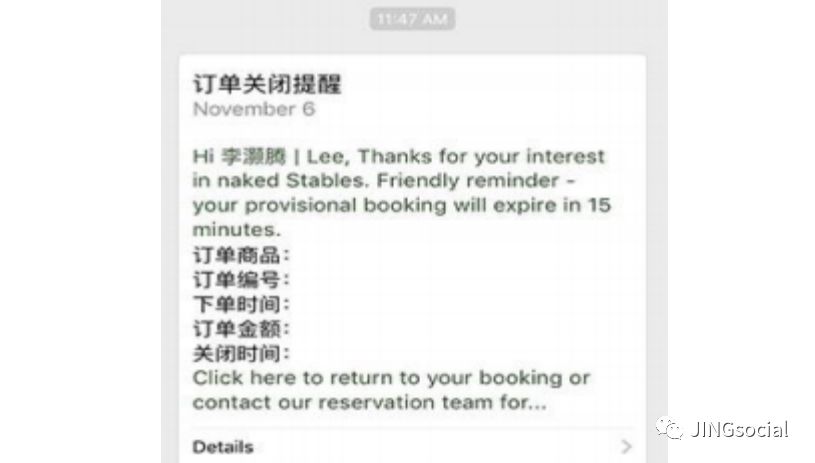 如用户在此之后的48小时内,前往H5页面或小程序下单,则不再打扰;如无反应,则在其点击菜单后的第47小时,再次发送图文消息进行二次互动(如下右图)