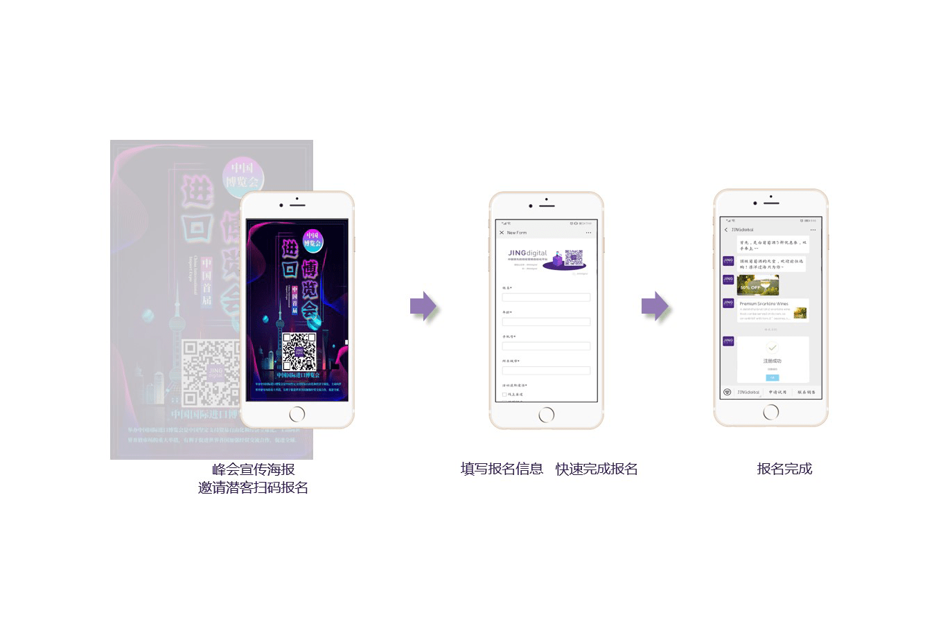 品牌方在峰会开始前先进行线上预热,引导潜客扫码、在H5表单中填写报名信息完成报名。