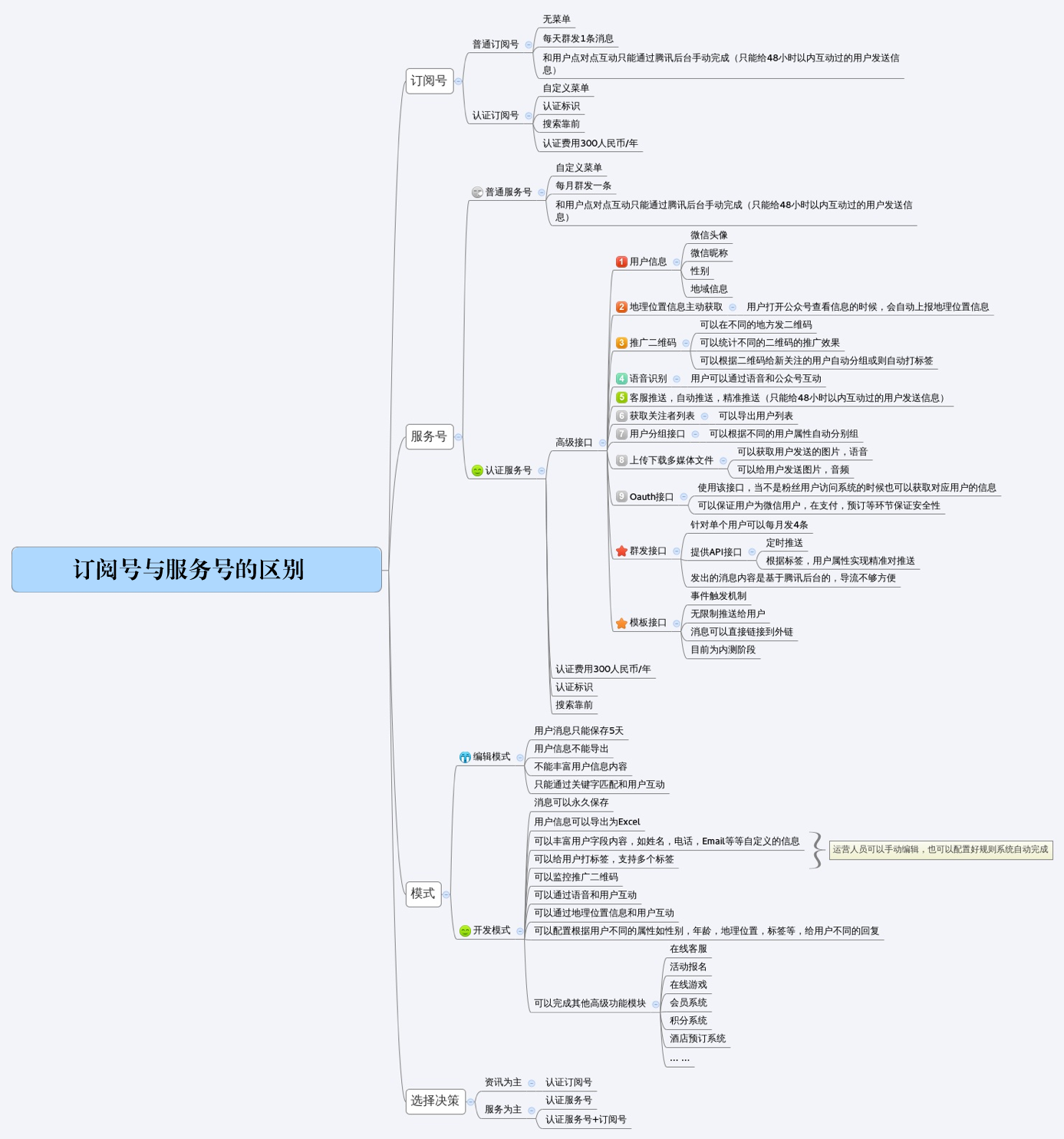 图二:订阅号与服务号区别详解(点击大图查看最全服务号与订阅号功能指南)