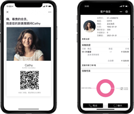 该零售品牌为每个销售人员分配专属的企业微信账号,在线下的零售门店中,销售可以出示该电子名片让客户扫描,无需销售人员确认通过,客户就会直接进入销售人员的好友列表。