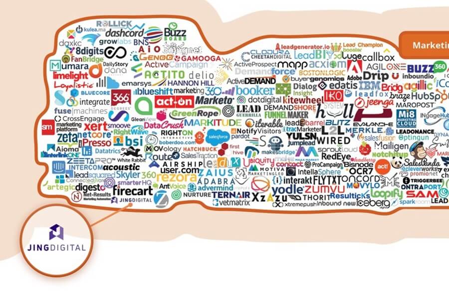 图为:JINGdigital入选2020全球MarTech市场全景图营销自动化板块