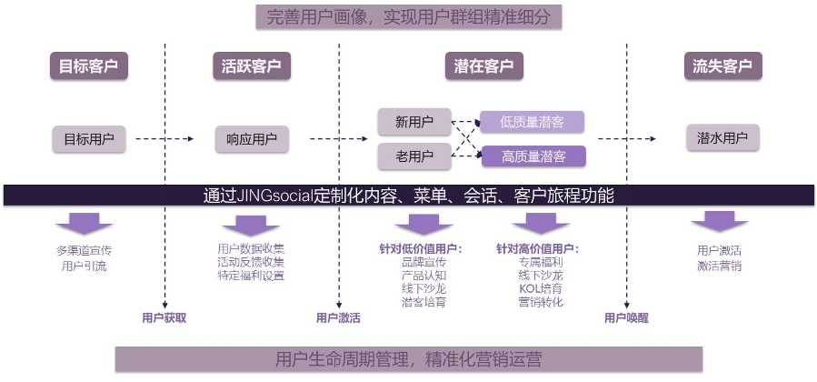 - 通过JINGsocial平台的标签、会话、用户积分等功能,追踪用户行为,完善用户画像;