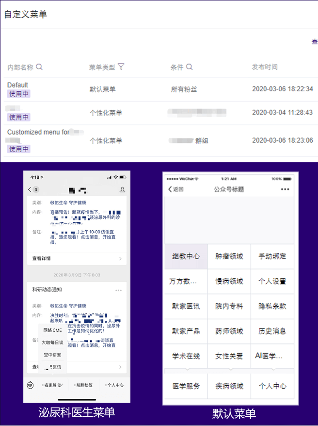 - 企业可按照医生的领域标签对不同领域的医生发布不同的菜单;
