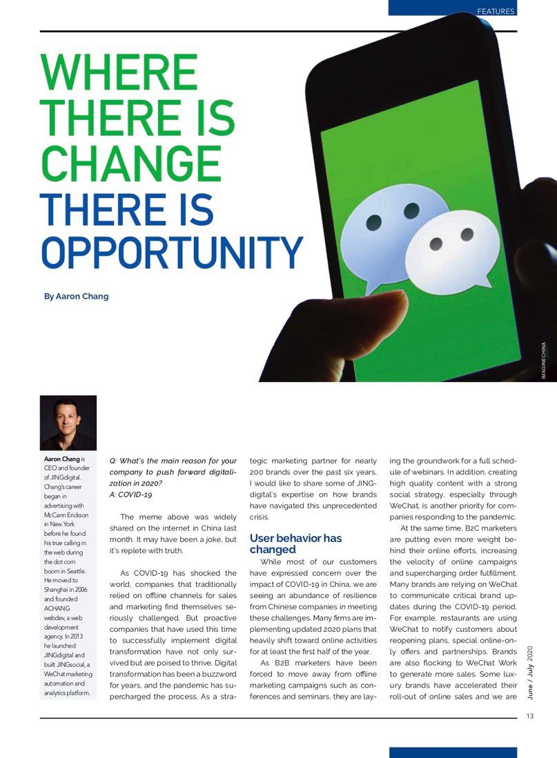 企业数字化转型的呼声不绝于耳,2020年的新形势再次将转型进程提速。6年间,JINGdigital团队作为营销自动化领域的专业技术服务商,为近200家品牌提供了服务。近日,JINGdigital CEO Aaron Chang 接受了美商会专访,并就特殊时期内品牌的数字化转型提出了实用策略,分享了JINGdigital客户在数字化转型浪潮中如何应用营销自动化工具度过此次危机。
