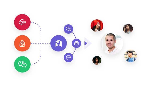 您的现有客户分散在CRM系统中、自建电商平台内、官方微信中,各处的客户信息相互割裂。我们能够帮助您打通上述三个平台并将客户信息整合,以系统性的方式通过微信、邮件、短信等形式,定向触达现有客户,构建客户旅程,提升客户黏性,促进增购或复购几率。